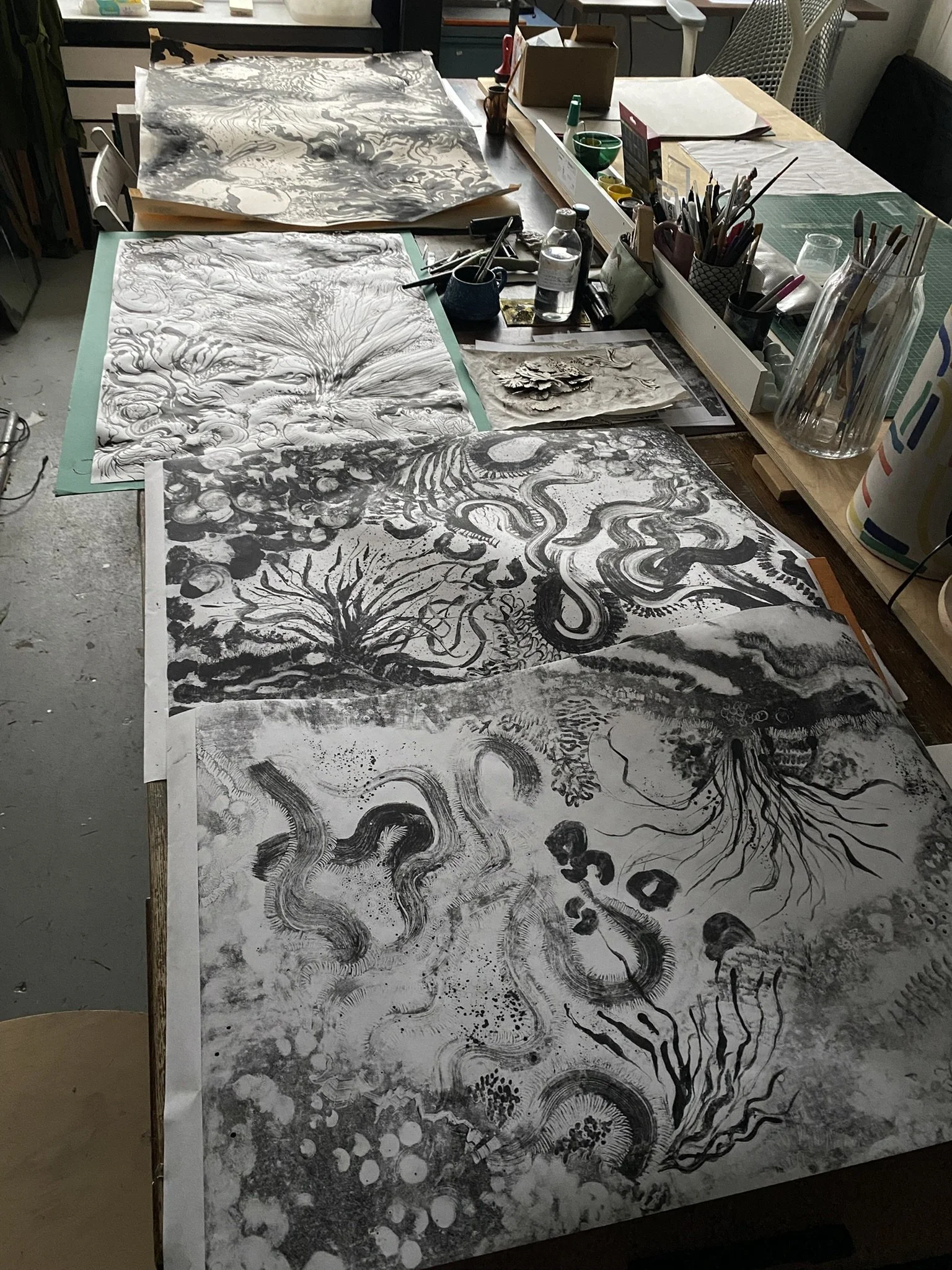 I spent time last week making inky energetic monoprints to get back into it and it felt wonderful.