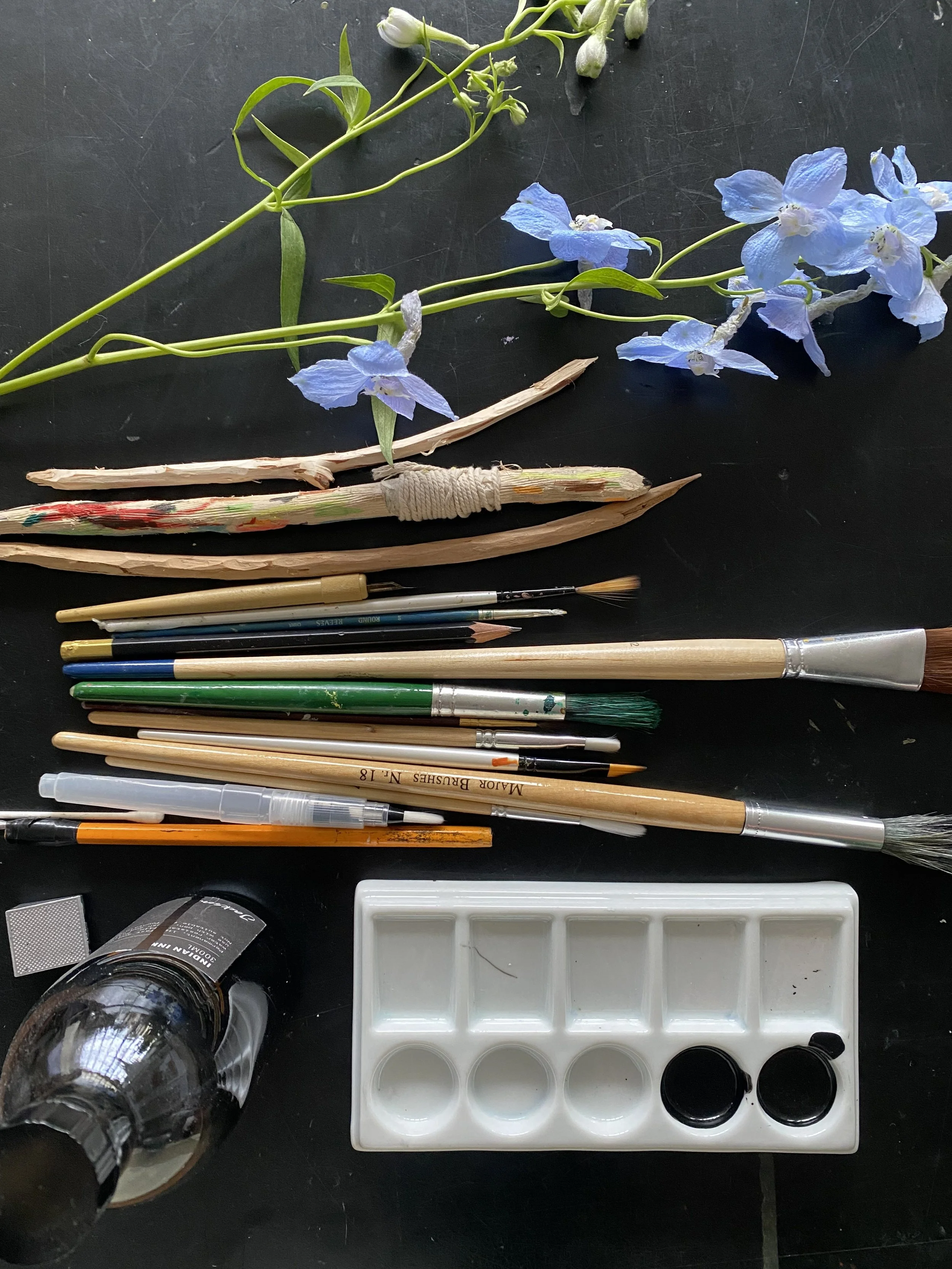 Magic Sticks brings together artists whose practice is grounded in drawing. Pippa came to my studio and rummaged through drawers of unseen work, which sparked something in me when I saw them all laid out together. The piece she chose was drawn with a whittled stick, no less! I’d almost forgotten about drawing, and this experience has been a catalyst for returning to a daily practice, and for getting outside and reconnecting with nature.